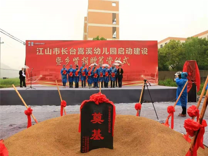 4月1日上午,天空下起瀝瀝春雨,江山市長(zhǎng)臺(tái)鎮(zhèn)嵩溪幼兒園工地舉行啟動(dòng)建設(shè)暨鄉(xiāng)賢捐贈(zèng)籌資儀式。